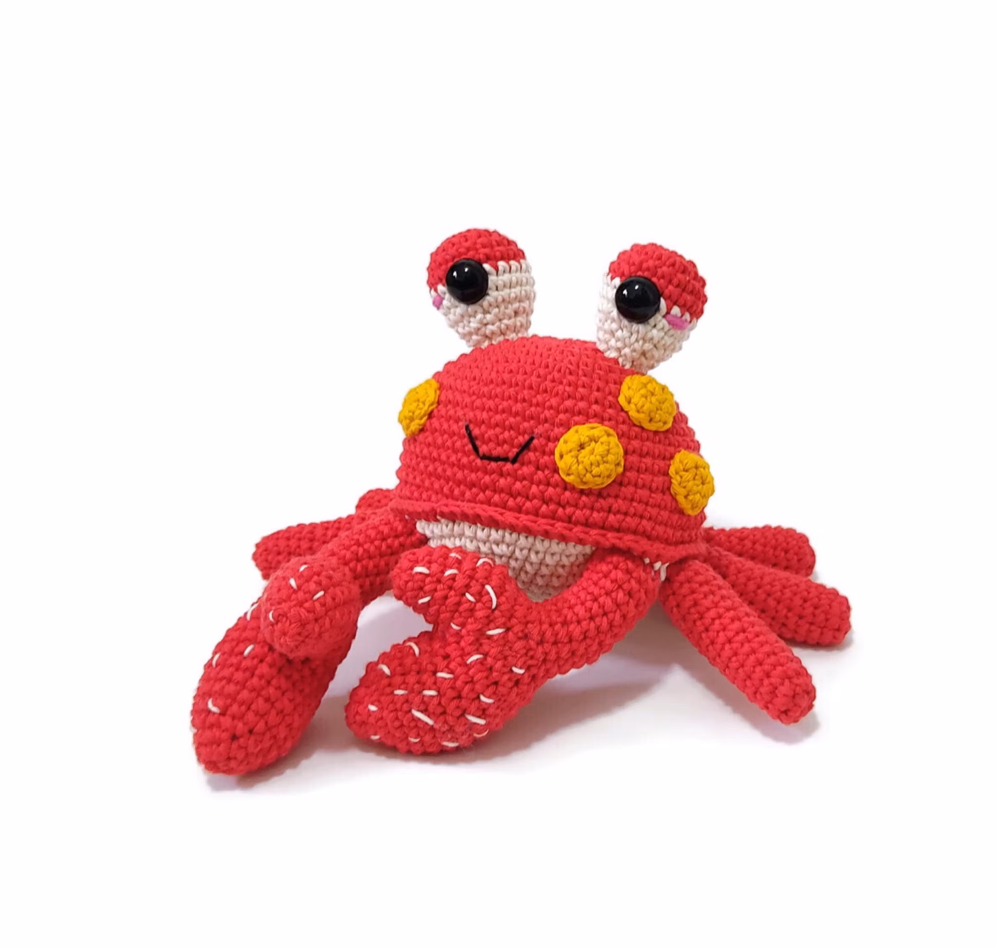 Låt oss presentera strandens tuffaste (och charmigaste!) krabba – MR Hammer! 💪 Med sina kraftiga klor, gulliga ögon 👀 och sin breda, kramgoa kropp 🤗 är han redo att klättra rakt in i ditt hjärta ❤️ (eller ditt garnlager 🧶).