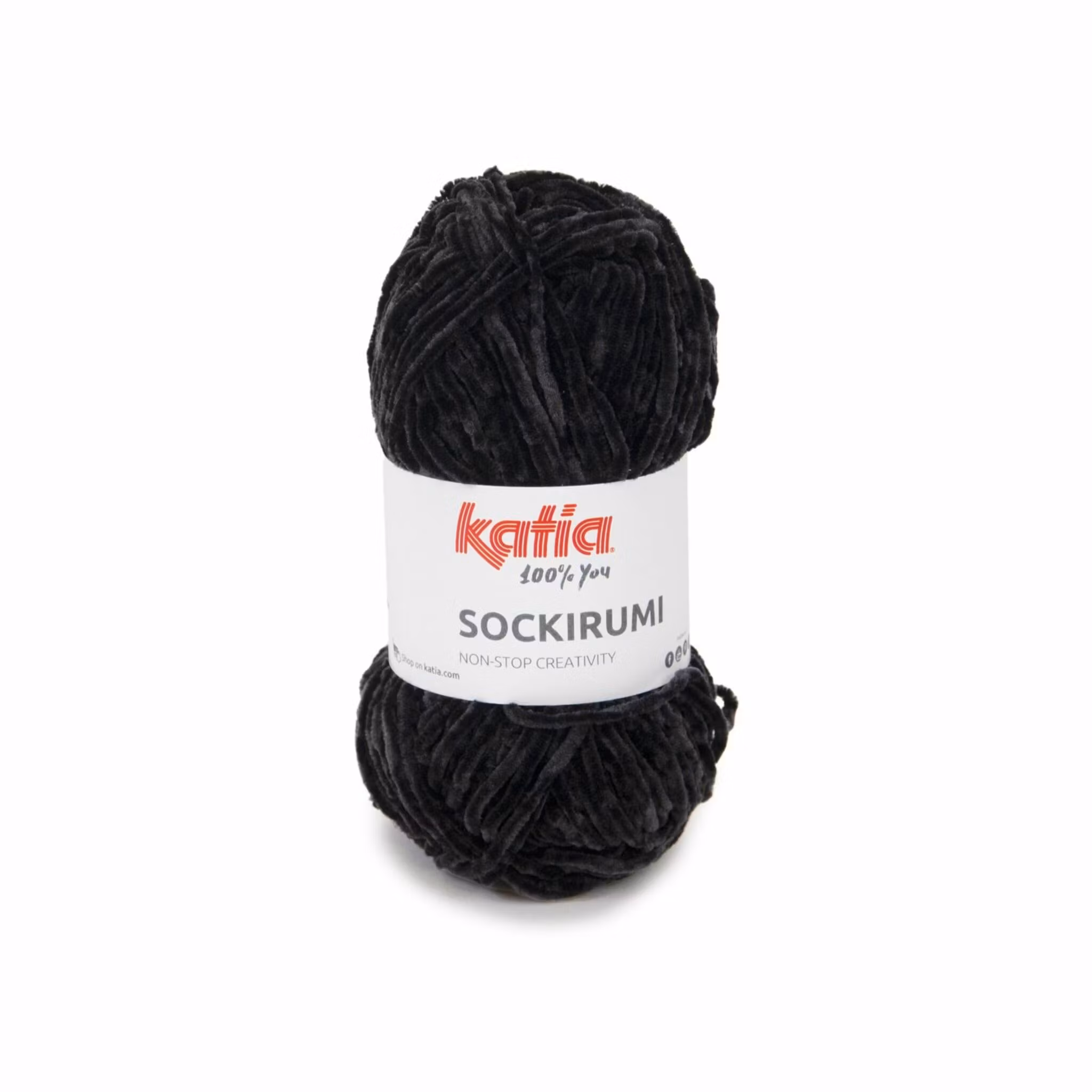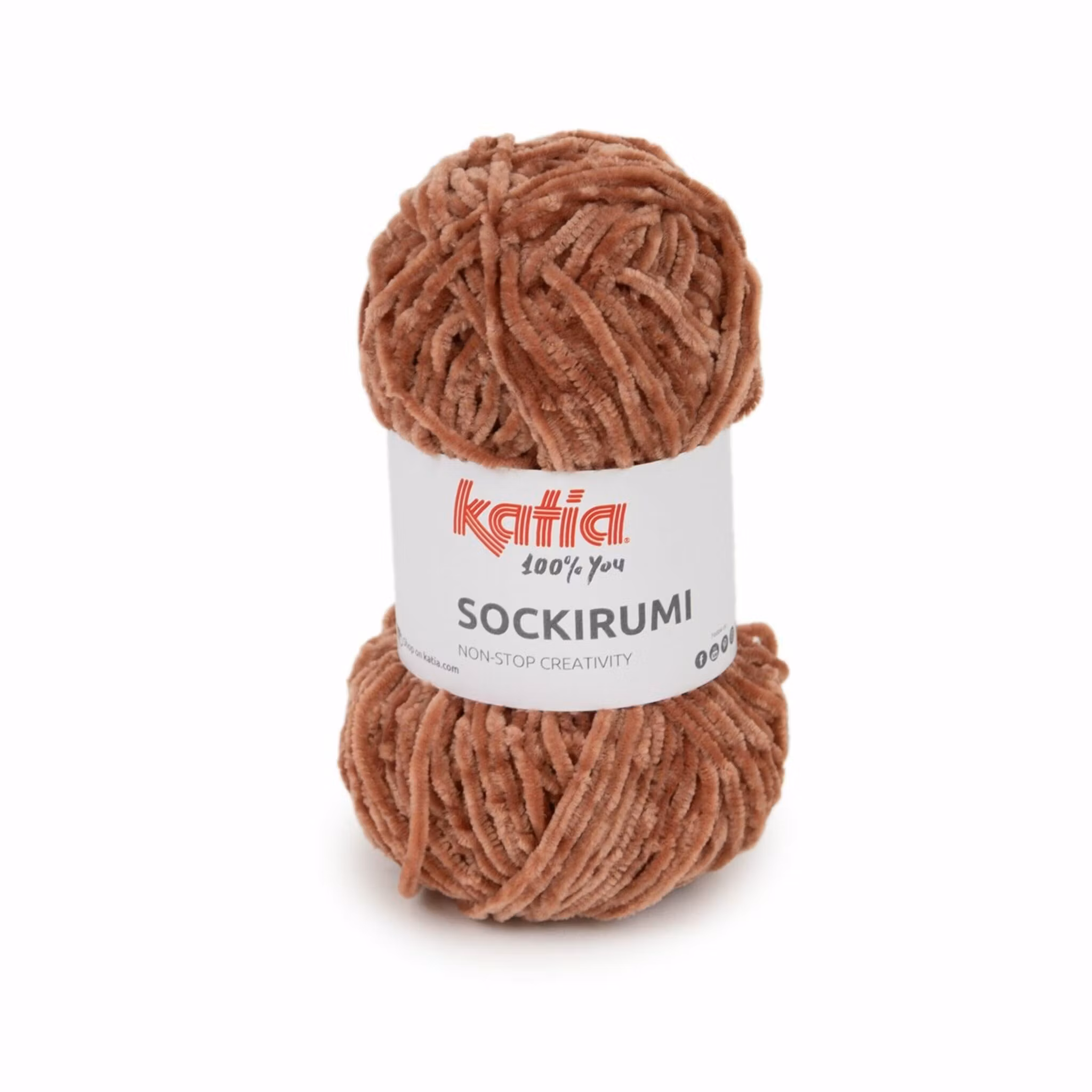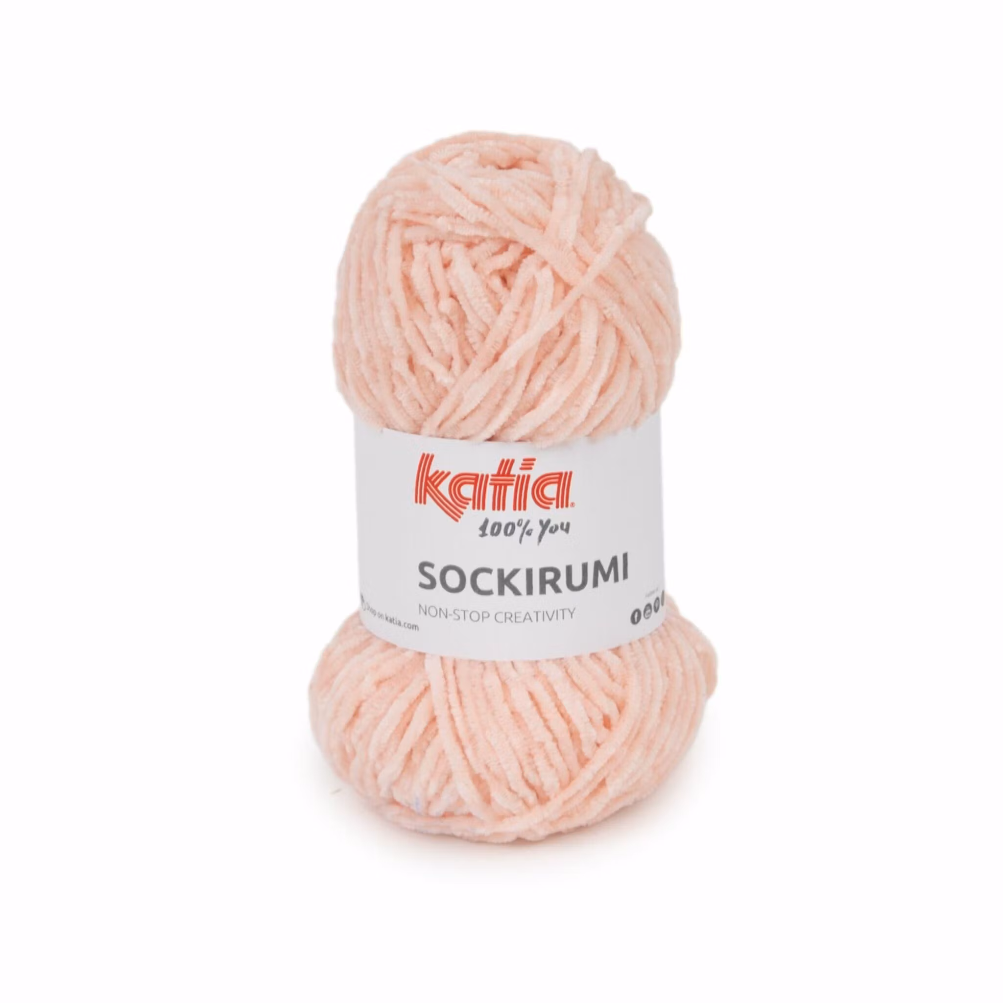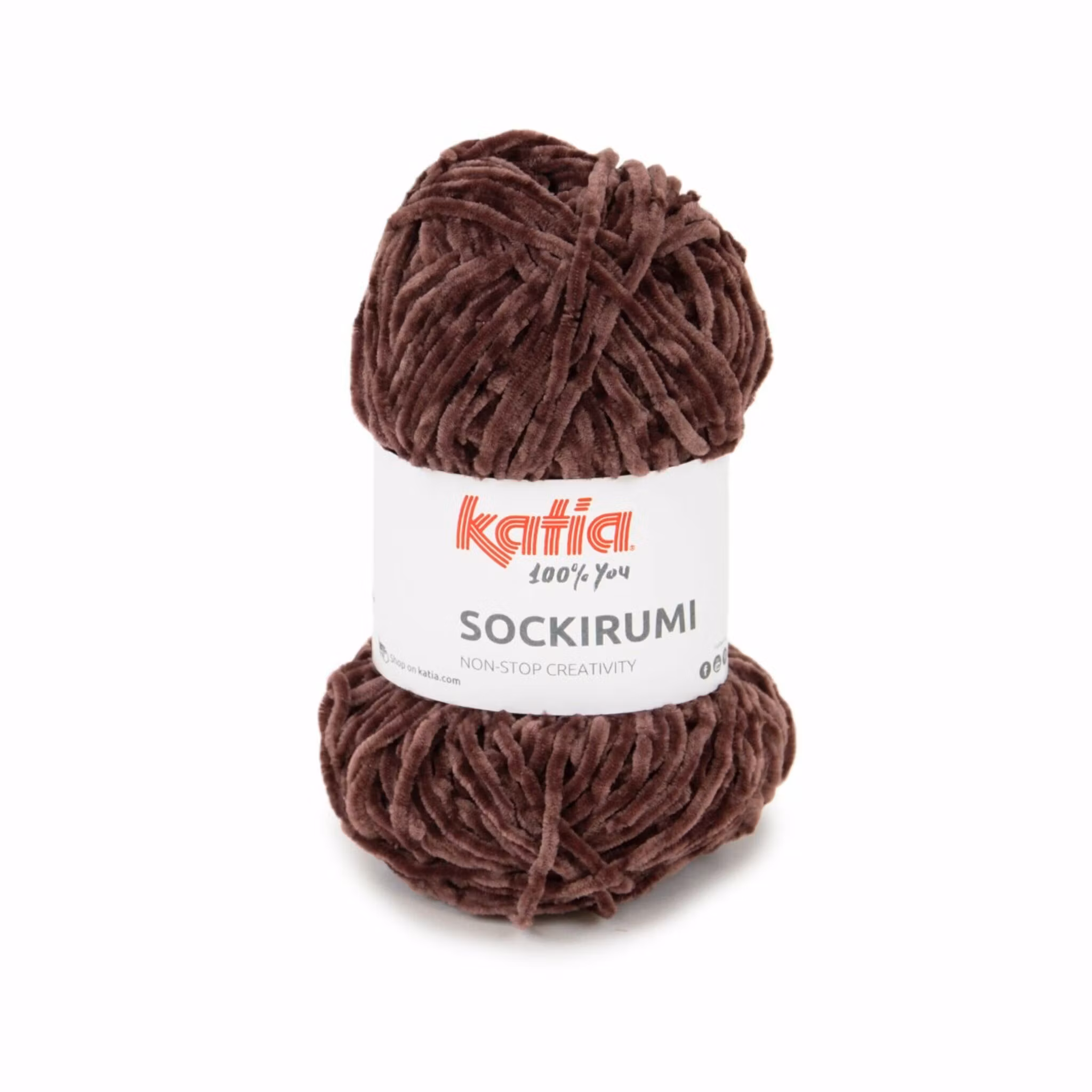 Katia Sockirumi är ett mjukt och slitstarkt chenillegarn med den perfekta tjockleken för att virka eller sticka mysiga sockor och charmiga amigurumis.