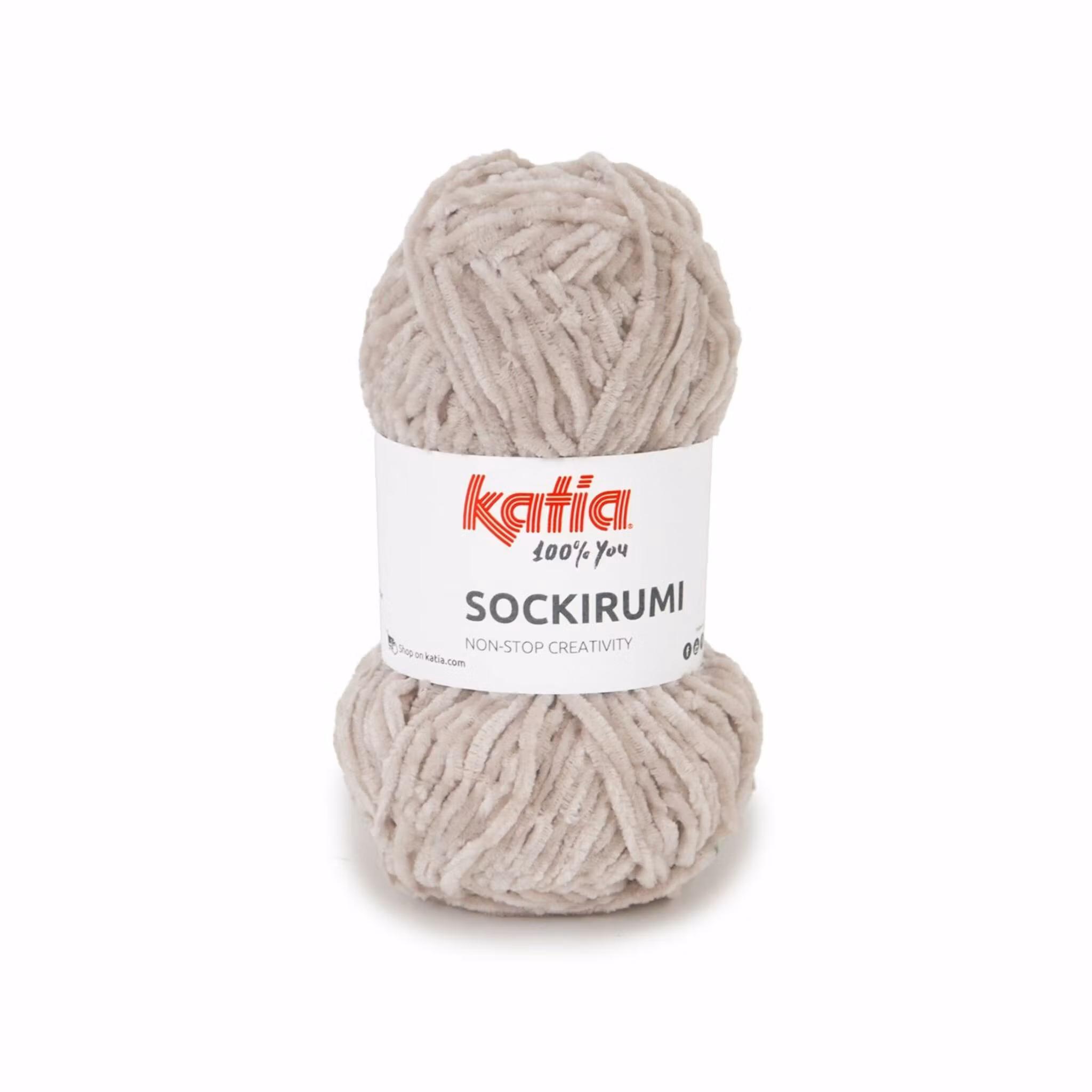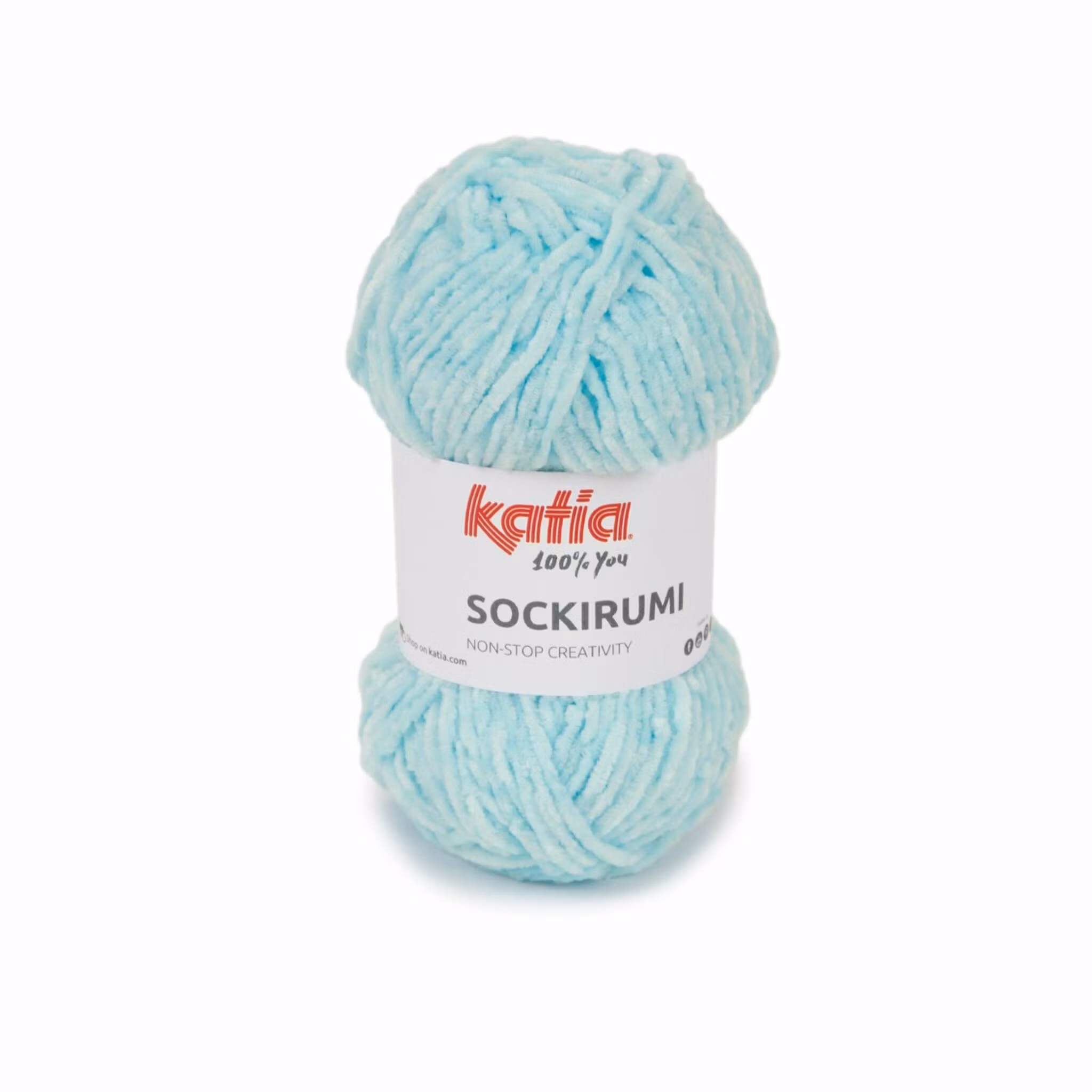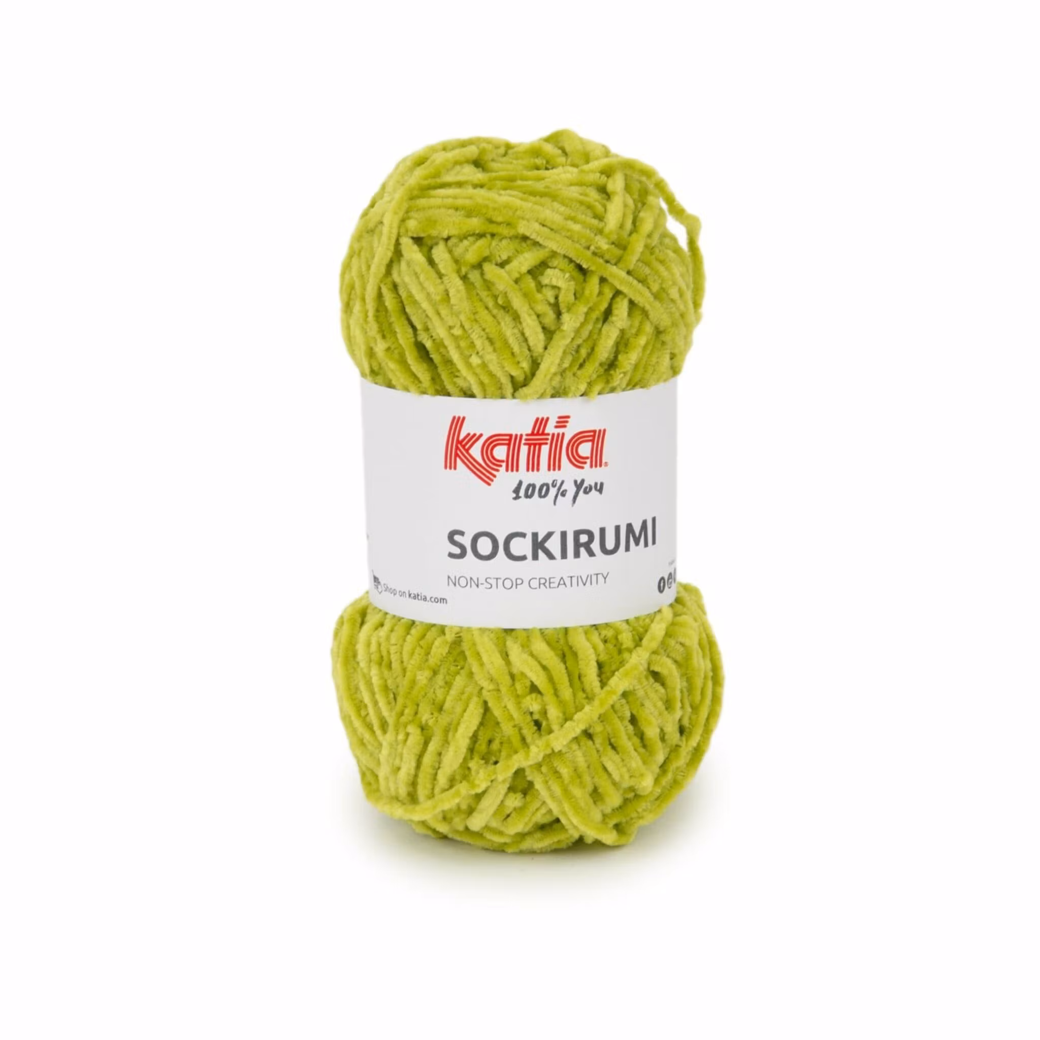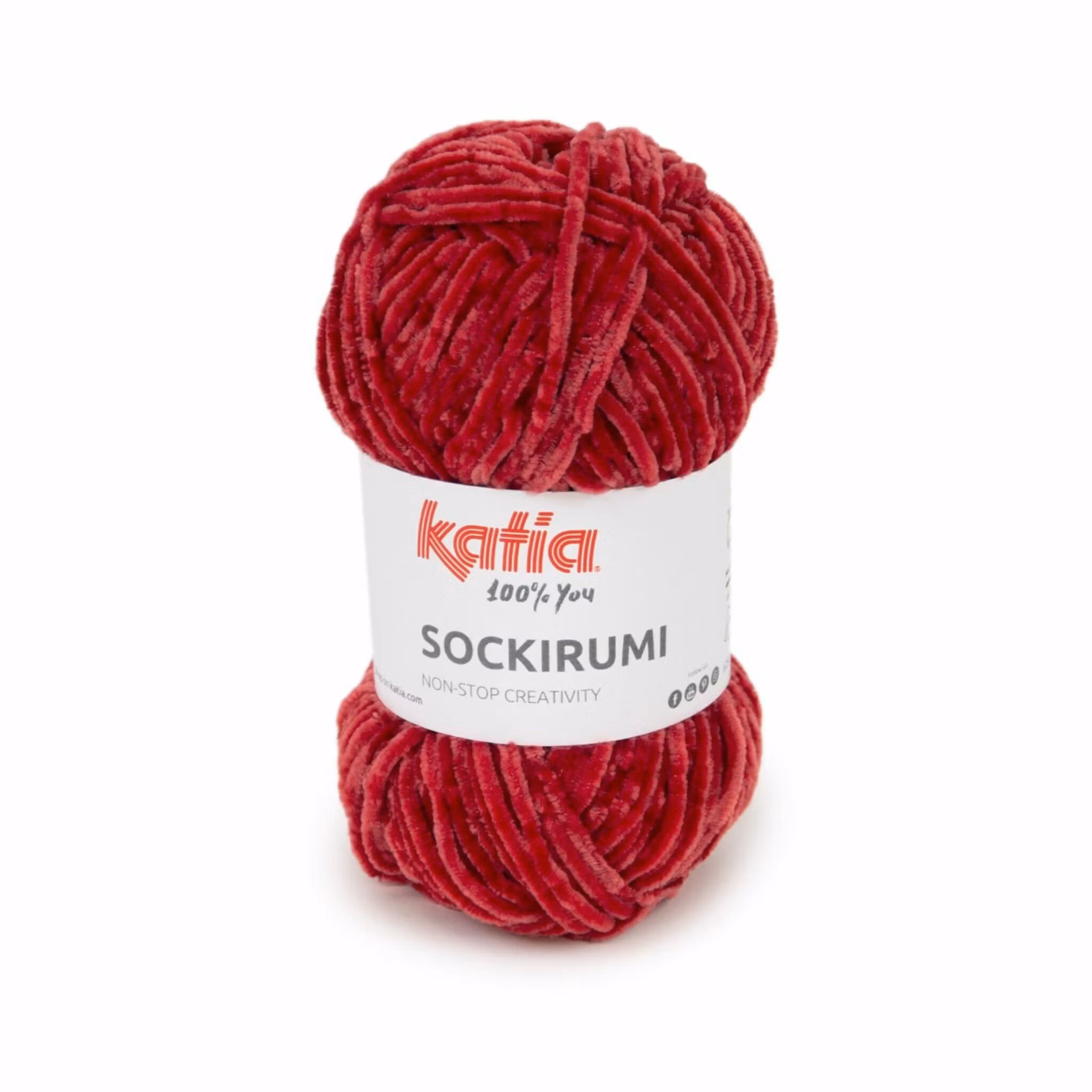 Katia Sockirumi är ett mjukt och slitstarkt chenillegarn med den perfekta tjockleken för att virka eller sticka mysiga sockor och charmiga amigurumis.