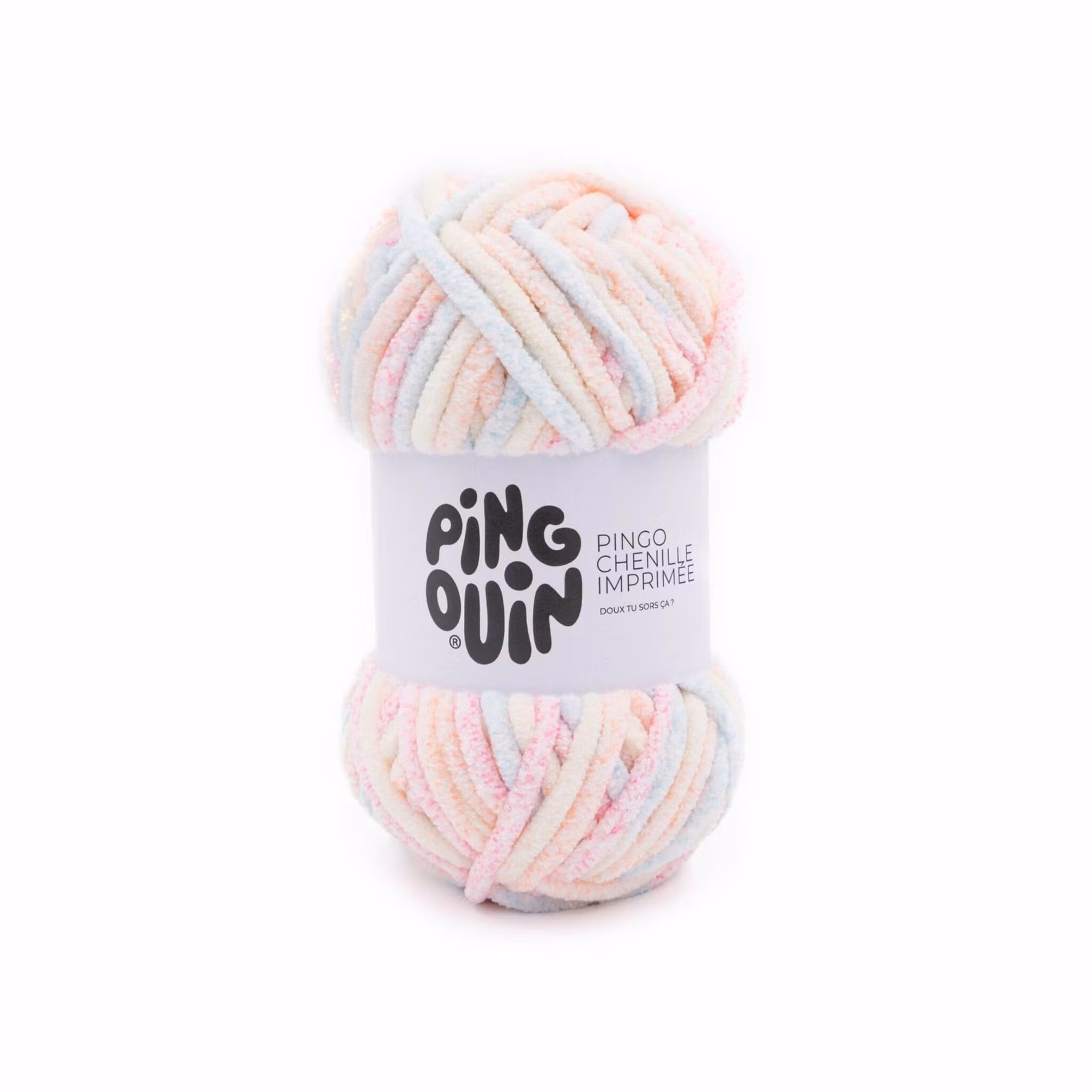 Pingo Chenille ImprimĂ©e Ă€r ett otroligt mjukt och fluffigt sammetsgarn med en vacker melerad struktur som ger ett unikt utseende till varje projekt. Perfekt till amigurumis, kuddar, filtar och andra mysiga virkprojekt som ska kĂ€nnas extra lyxiga! đ