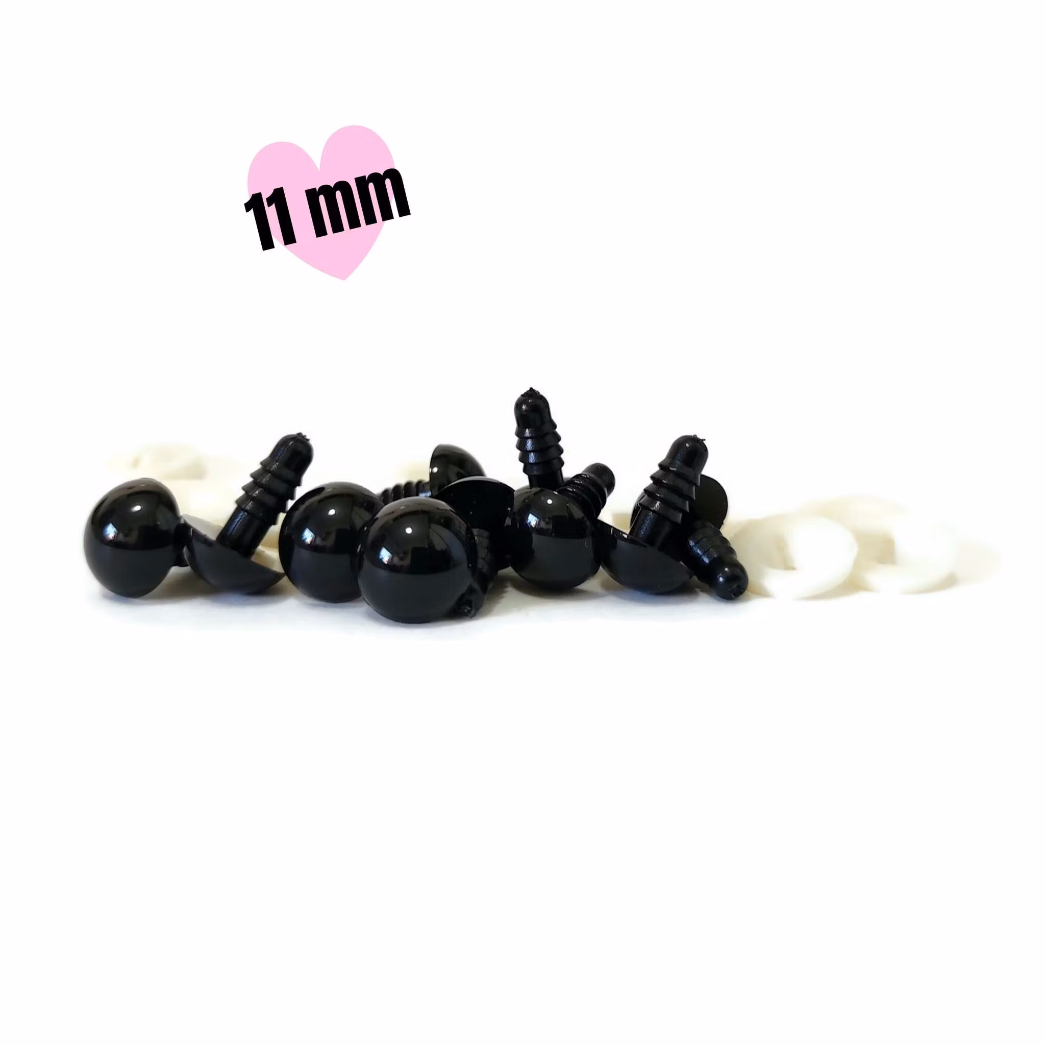 10 st (5 par) säkerhetsögon i storlek 11 mm (+ 10 stycken säkerhetsbakstycke, de vita som syns på bilden).