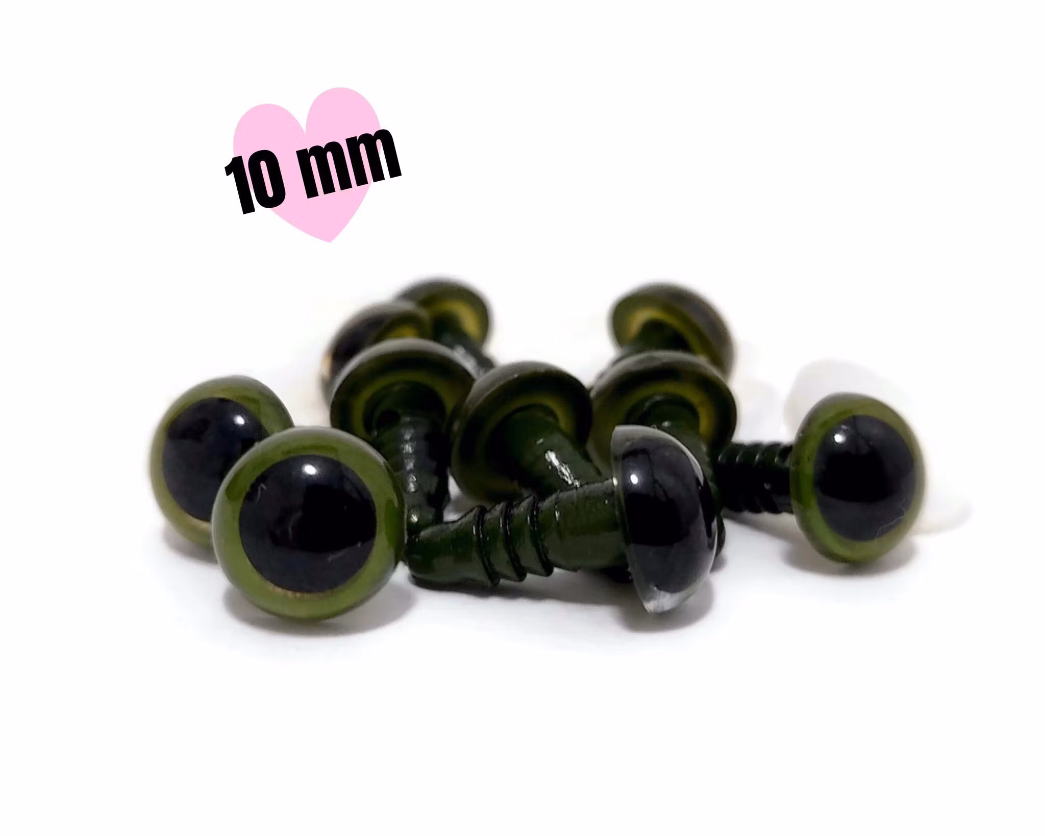 10 st (5 par) säkerhetsögon i storlek 10 mm (+ 10 stycken säkerhetsbakstycke, de vita som syns på bilden).