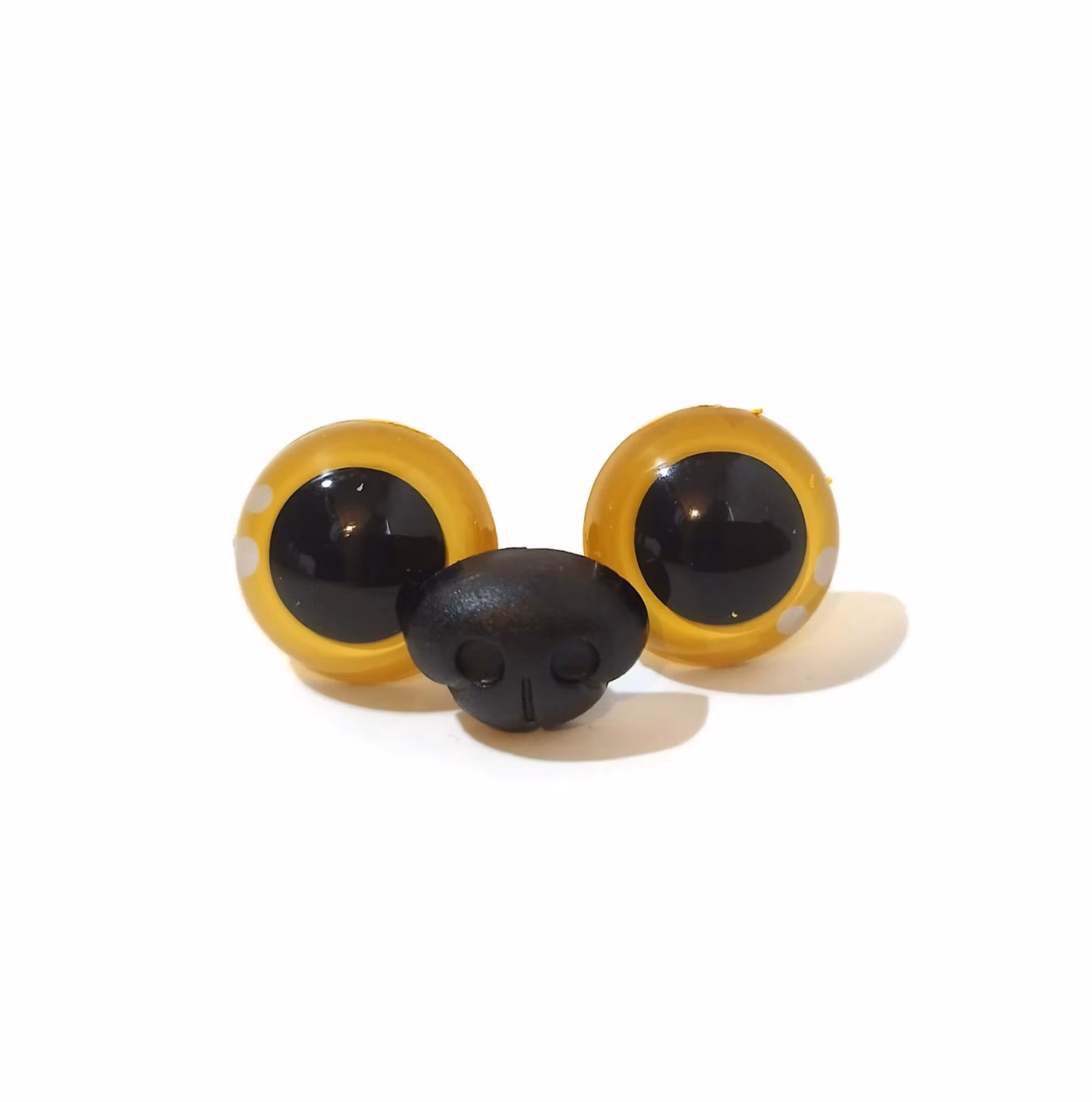 2 st handmålade ögon och en nos (18 mm) + bakstycken till alla tre. Passar till Larry lemur. .Testat enligt EN71-3Säkerhetsögon (amigurumiögon) används frä
