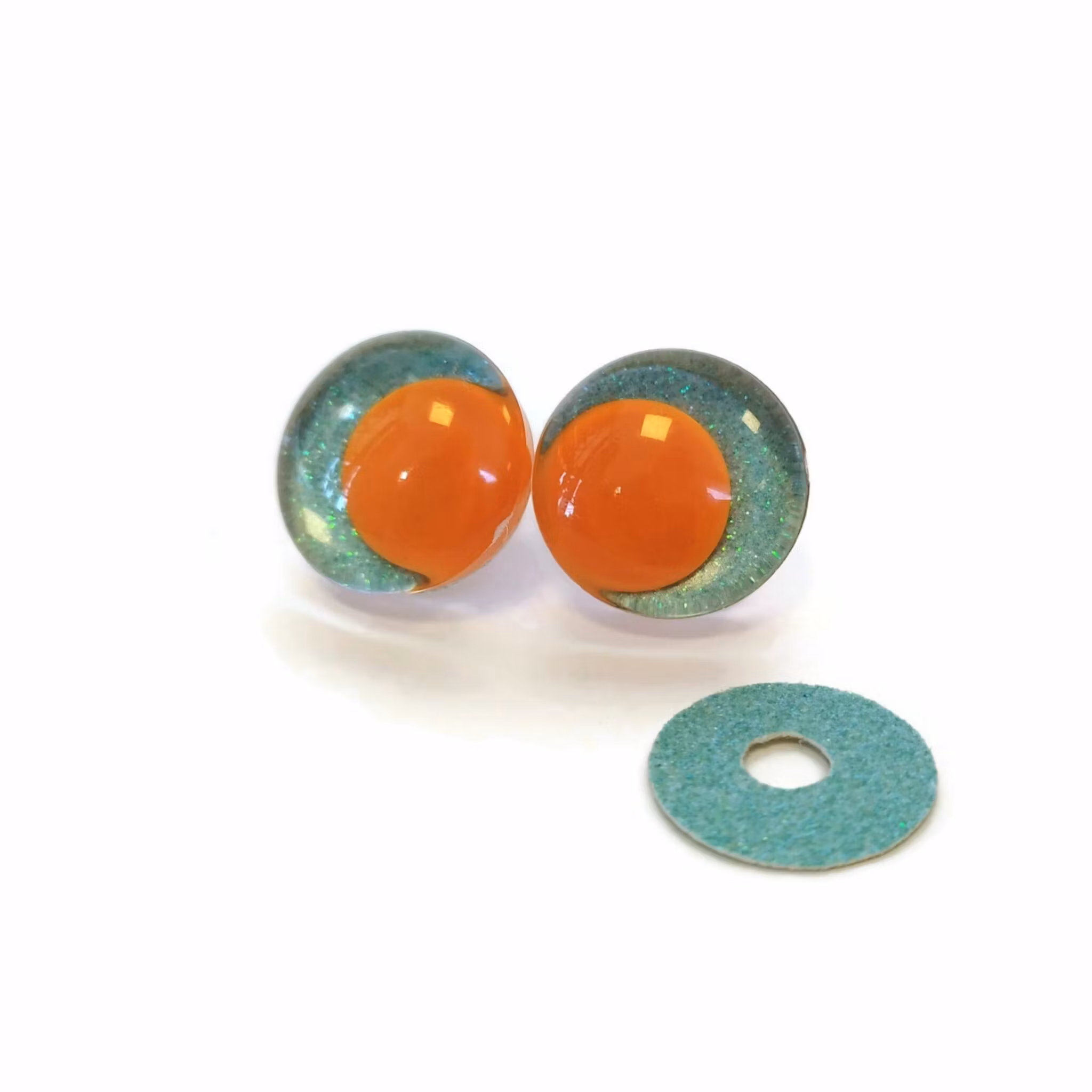 Mint 3D Off center Glitterögon med orange pupill 16mm 20mm 25mm 30mm • Sinker eyes • amigurumi ögon • virka • safety eyes • nalleögon