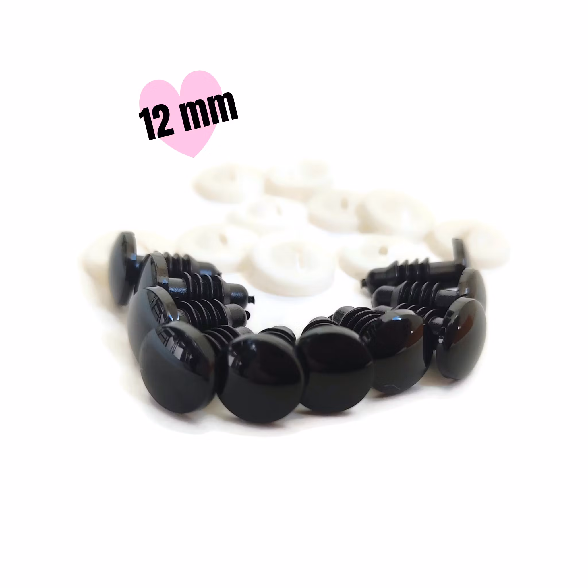 10 st (5 par) säkerhetsögon i storlek 12 mm (+ 10 stycken säkerhetsbakstycke, de vita som syns på bilden).