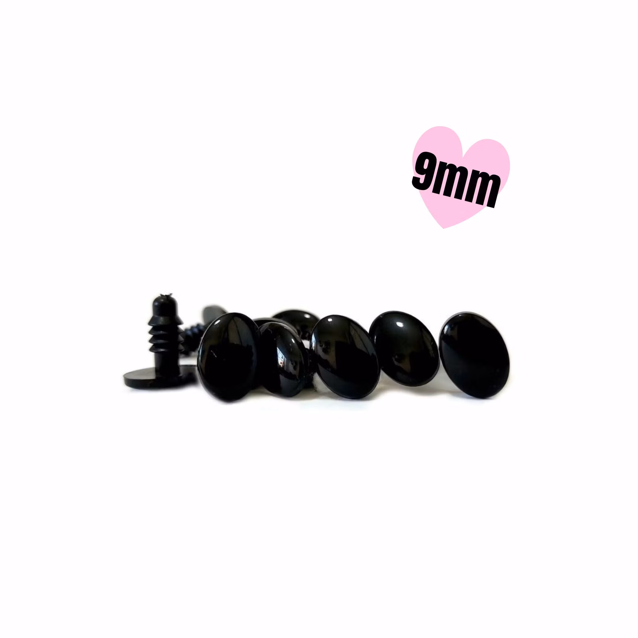 10 st (5 par) säkerhetsögon i storlek 9 mm (+ 10 stycken säkerhetsbakstycke, de vita som syns på bilden).