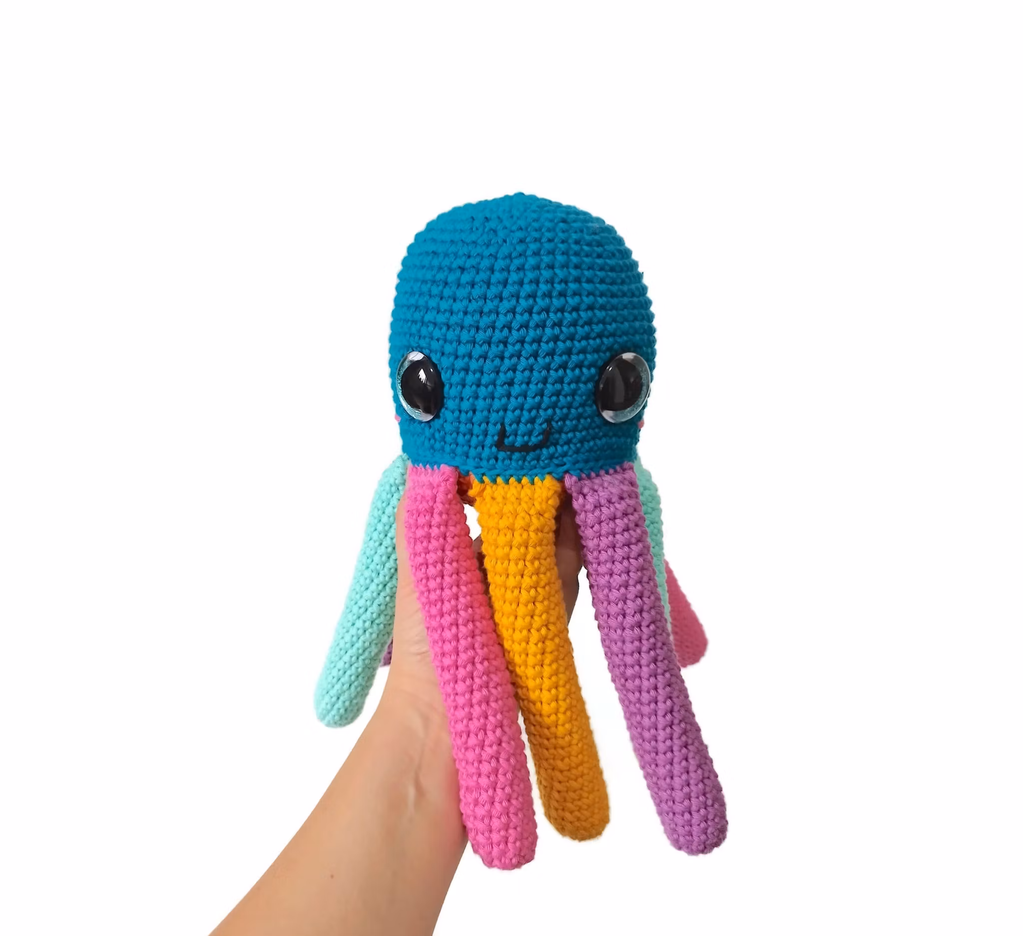 Om du använder liknande garn och virknål som mig blir din bläckfisk: