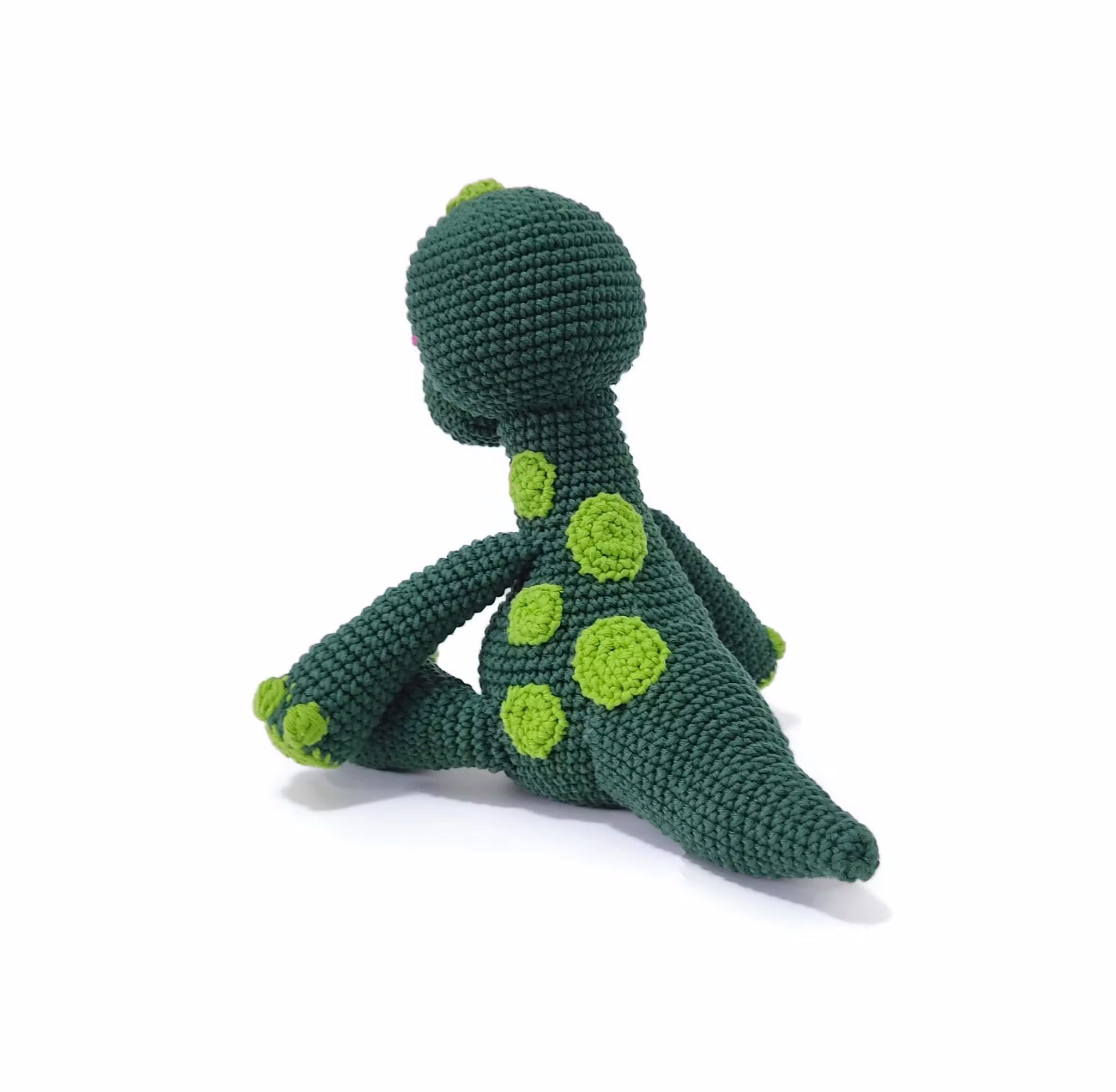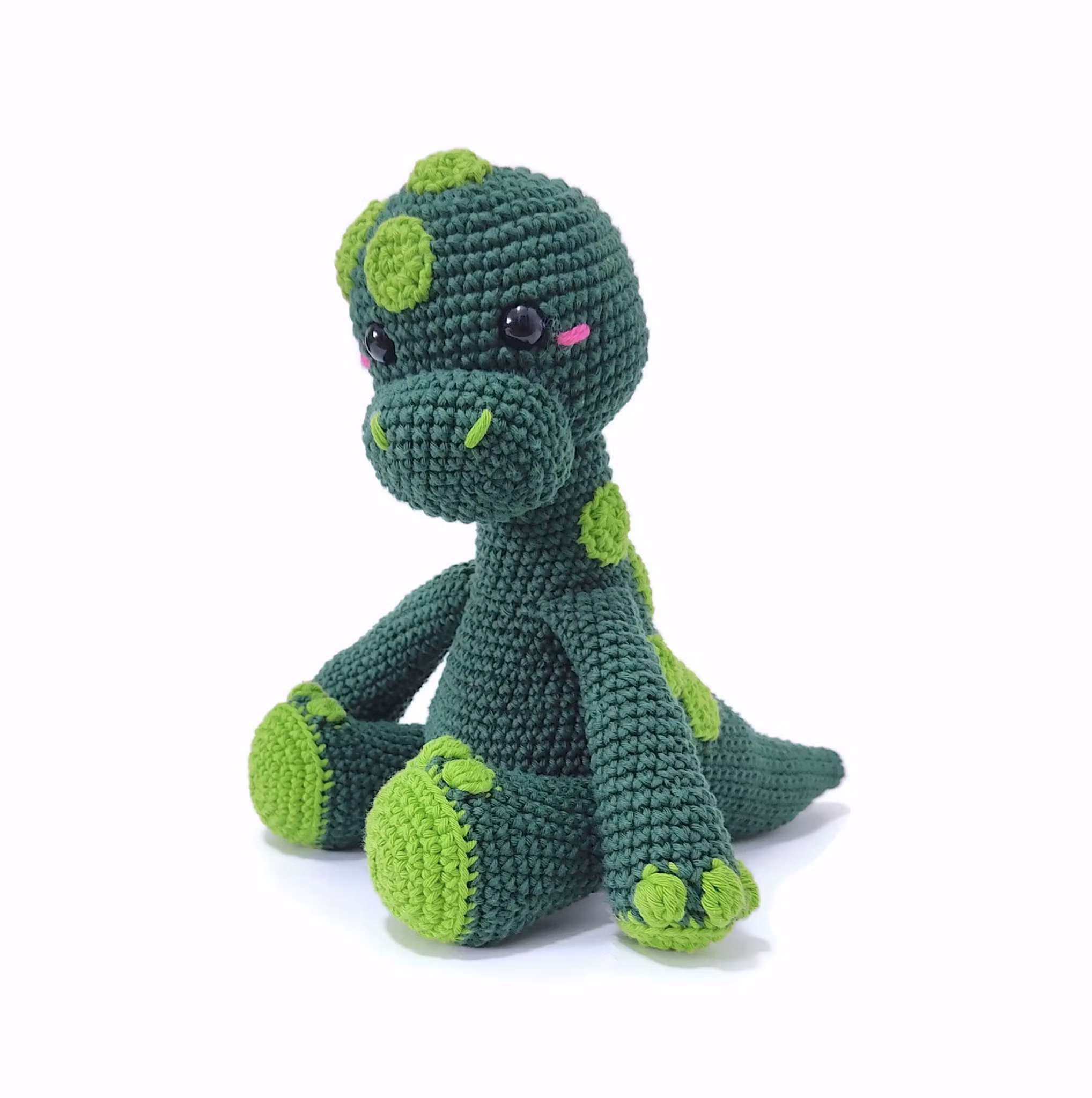 Detta är en virkbeskrivning på en Brontosaurus som heter Broccoli. Mönster säljs på svenska.