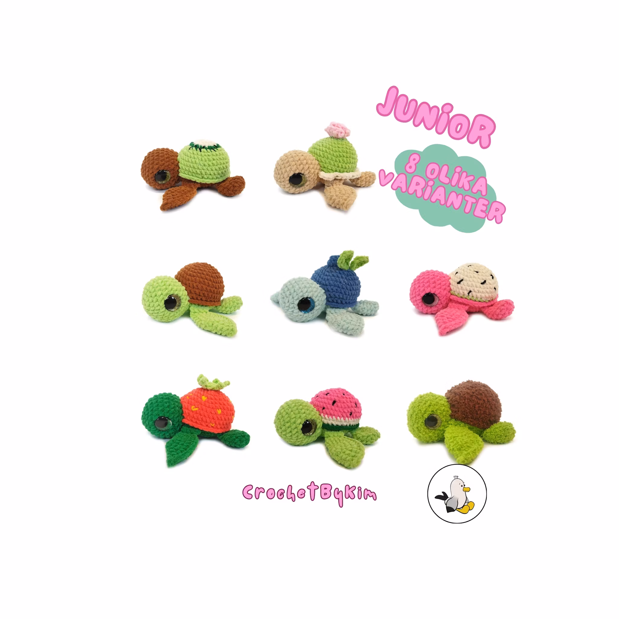 Detta är en virkbeskrivning på sköldpaddan turtellini. 8 olika varianter i ett mönster. Mönster säljs på svenska.