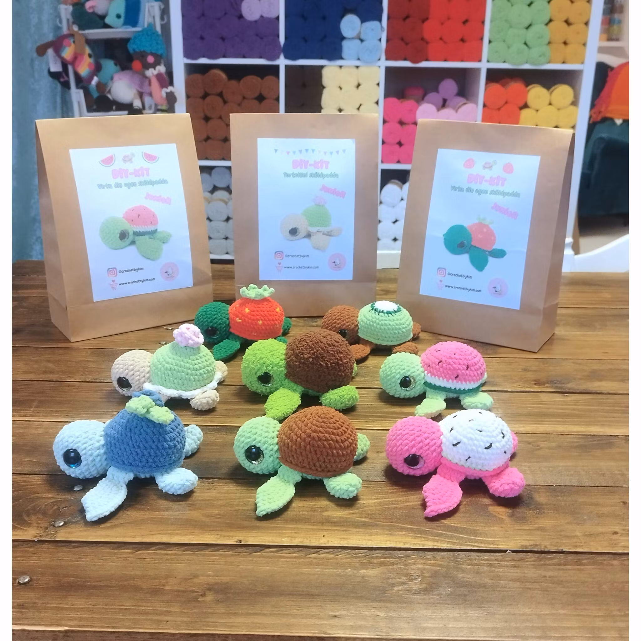Detta är ett "Low sew" mönster. Det enda du behöver sy fast är huvudet och ev. några delar på sköldpaddan (Jordgubbsblast, löv etc.).